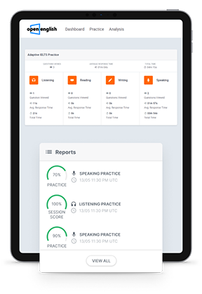 Nuestro International Test Prep, incluído en tu curso de inglés, está diseñado para ayudarte a practicar de forma ilimitada tus competencias lingüísticas del idioma, incluyendo: tu expresión escrita, tus habilidades de comprensión oral, así como tu comprensión lectora y entendimiento de la gramática del inglés.